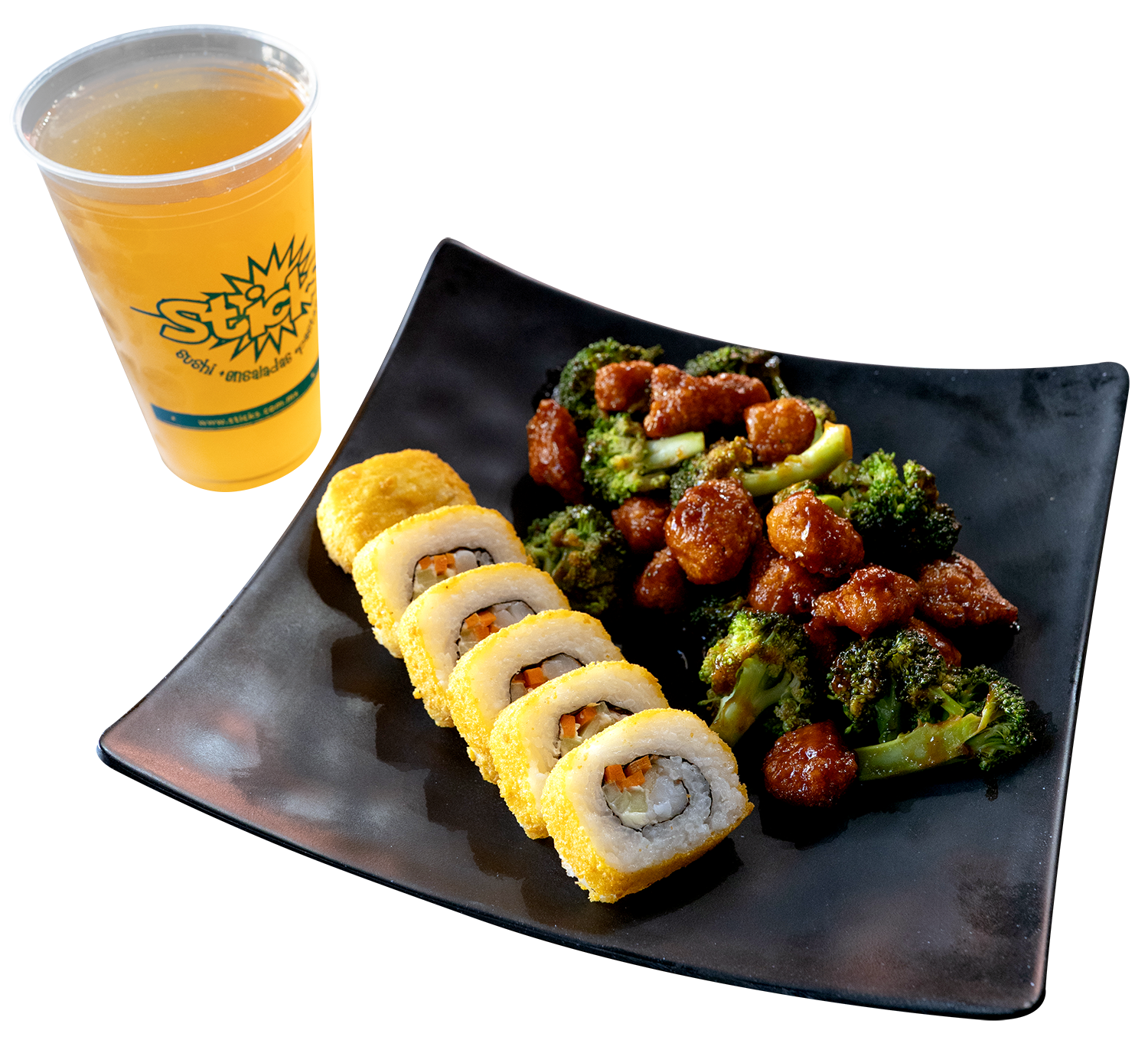 Pruébalo por corta temporada, solo cuaresma. Combo muy completo con medio sushi a elegir y nuesro BBQ Sticks.