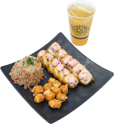 Combo muy completo con sushi de ingrediente a elegir coronado con tampico